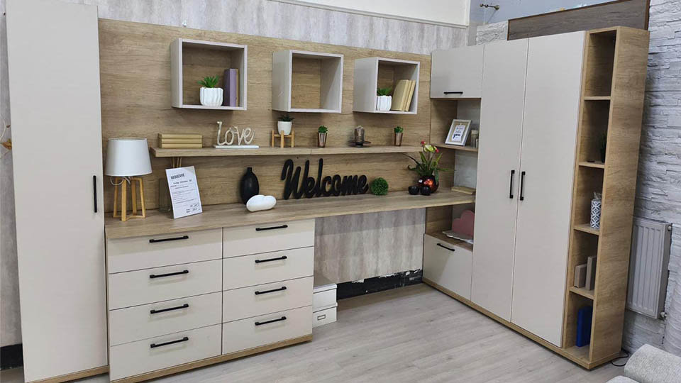 • Carcasa pal stejar Nebraska natur,fronturi pal bej nisip,manere metalice,balamale si glisiere soft-close.