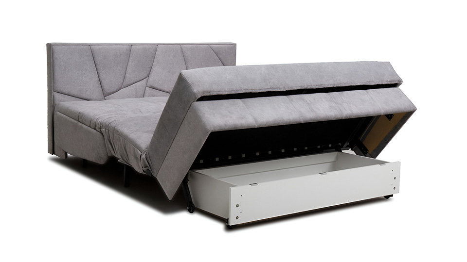 Canapea extensibila ,cadru metalic, saltea pocket spring, lada depozitare, disponibila in 2 dimensiuni 140 cm/160 cm.