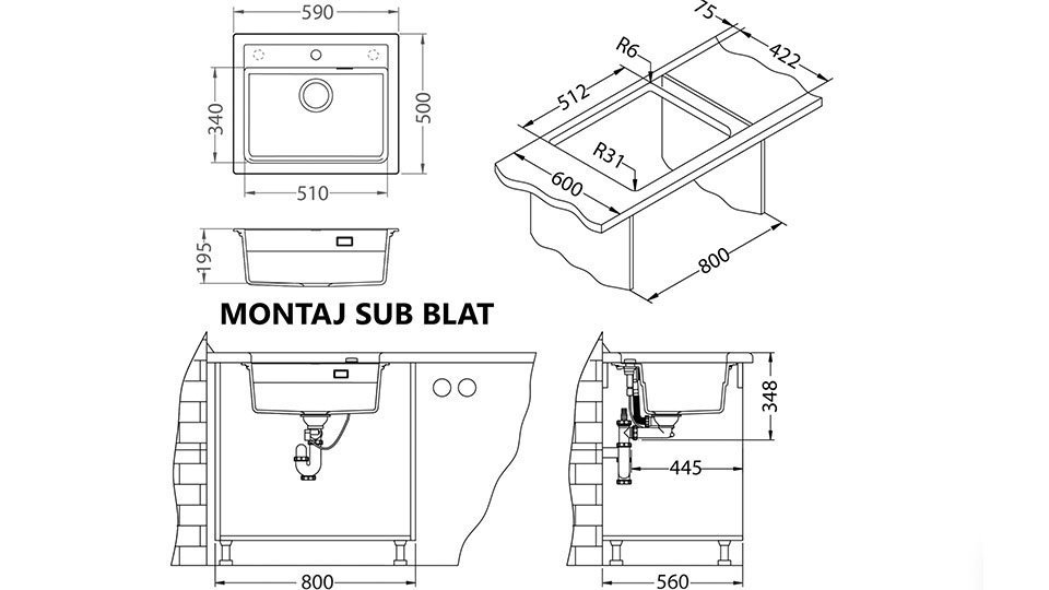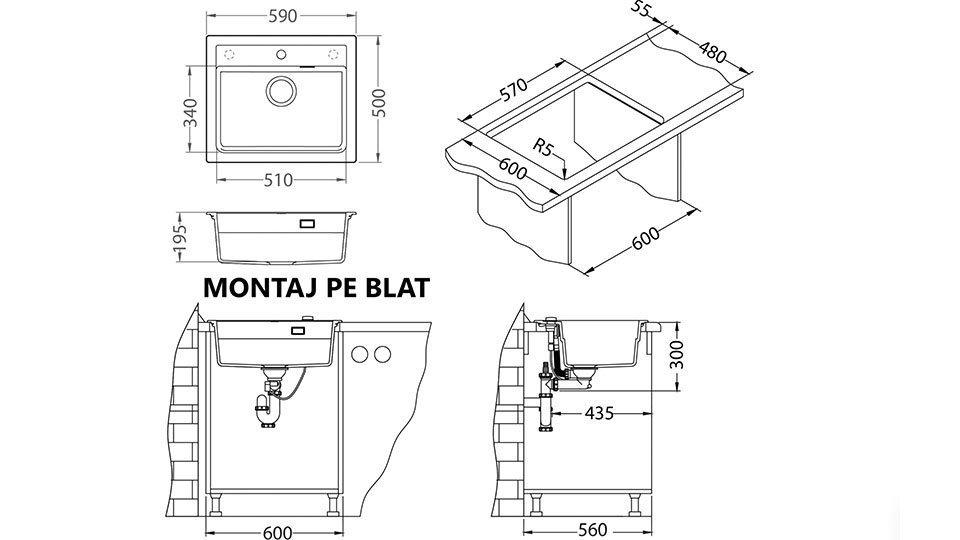 • Dimensiune cuva (mm): 510 x 340 x 195mm.