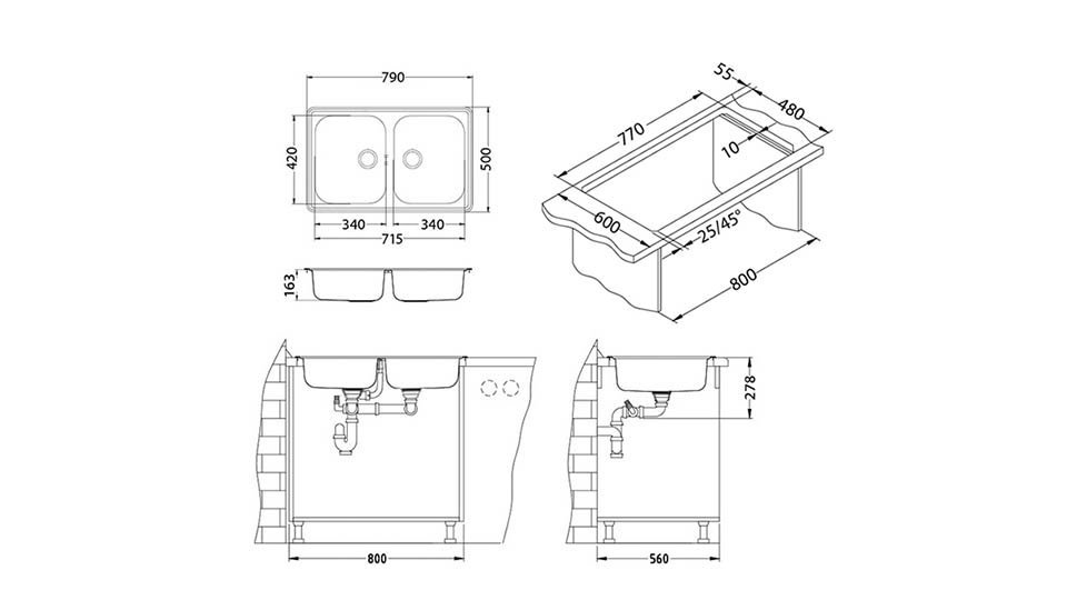 Chiuveta inox Line 90