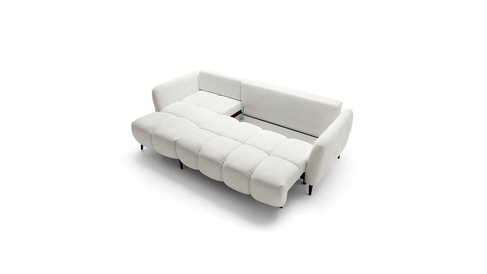 Colțar extensibil cu spatiu de depozitare, design minimalist, arcuri ondulate si sinusoidale , spuma poliuretanica, dimensiuni L 250 x l 150 x H 90 cm.