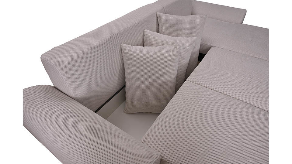• Functiuni: sezut extensibil, spatar rabatabil, lada asternut.