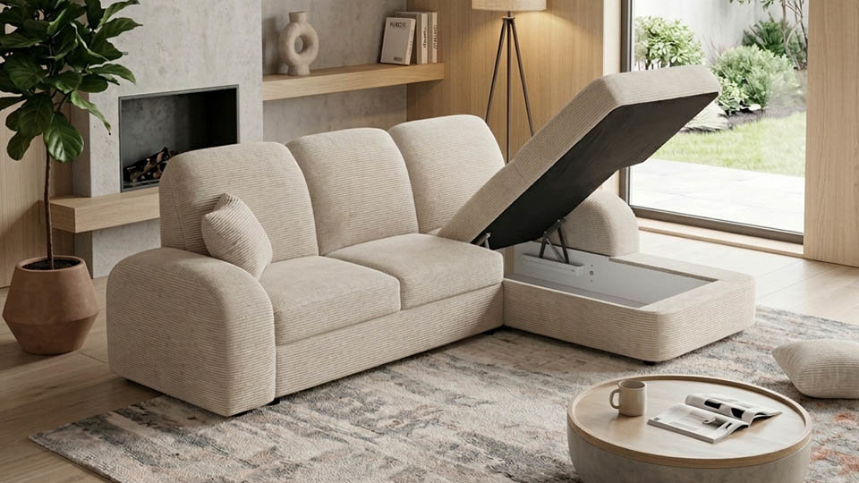 Colțar compact extensibil, cu funcție de dormit și ladă de depozitare, confortabil și ușor de integrat în orice spațiu, disponibil in 3 variante de dimensiuni.
