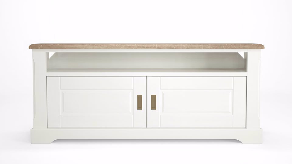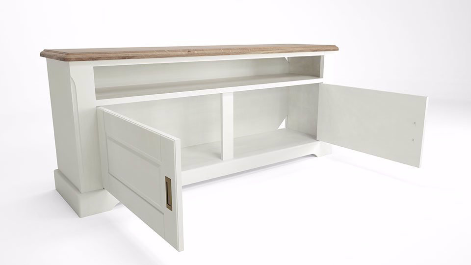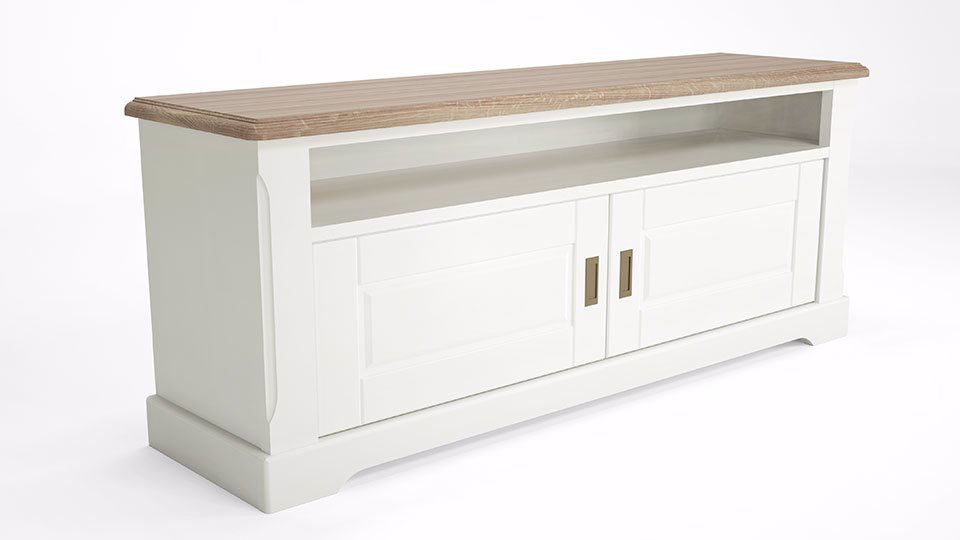 Aceasta comoda pentru televizor este prevazuta cu un raft deschis si un raft acoperit de doua usi, fiind ideala pentru organizarea eficienta din living. Dimensiunile acesteia sunt 140 cm latime, 37 cm adancime si 60 cm inaltime.