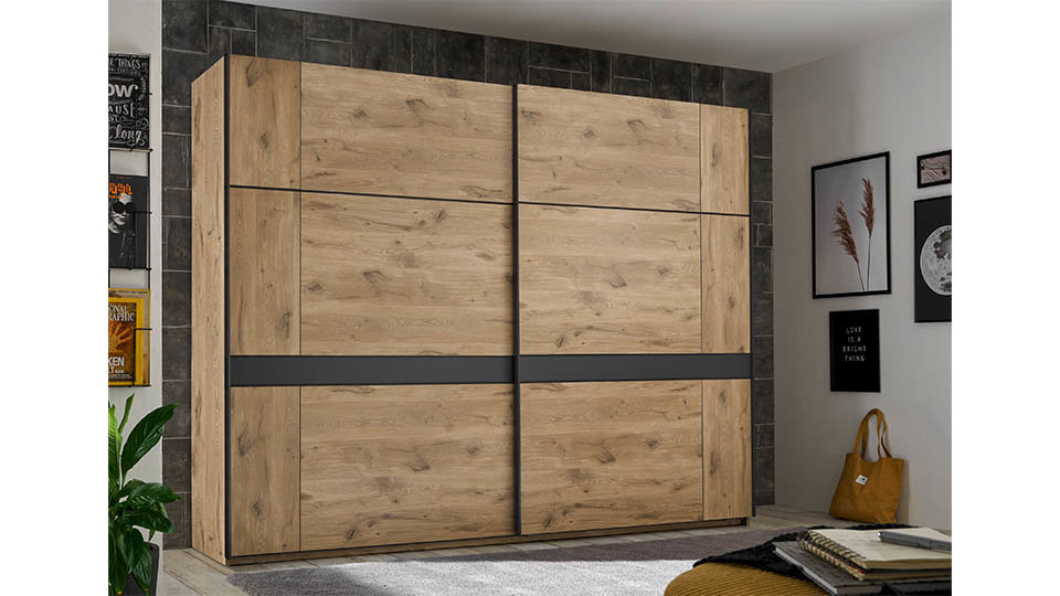 • Dulap cu 2 usi glinsate, finisaj grafit/ viking stejar.