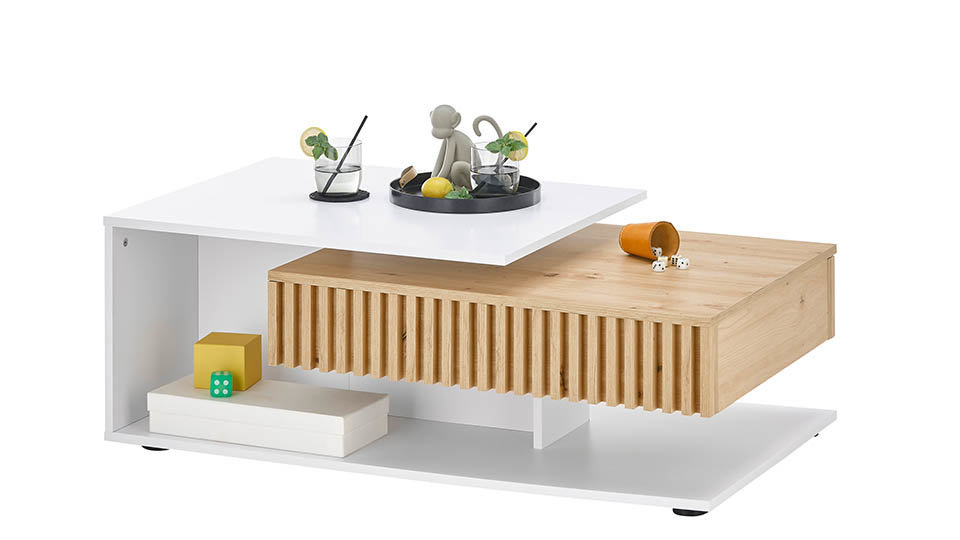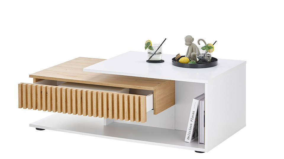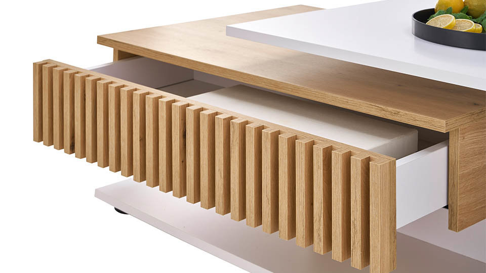 • Masuta de cafea prevazuta cu sertar riflaje din MDF.