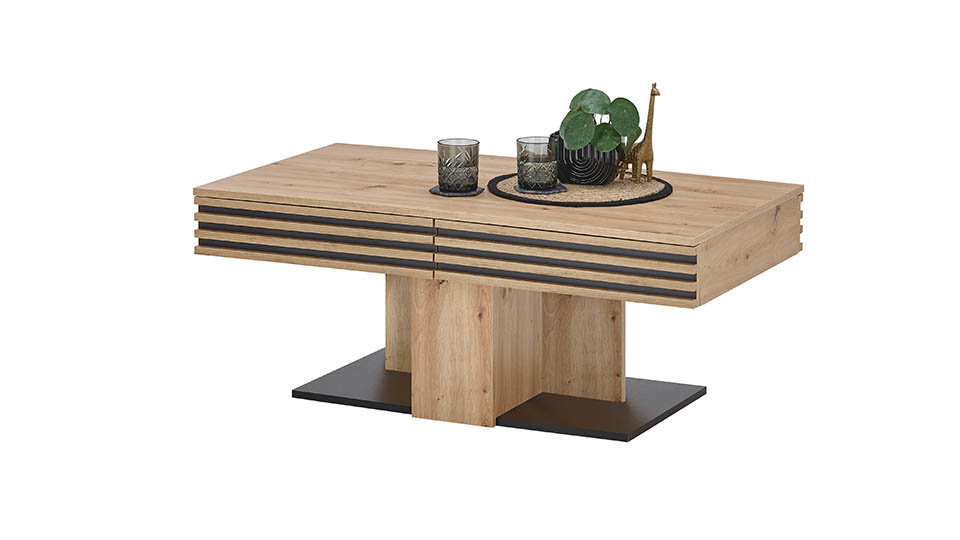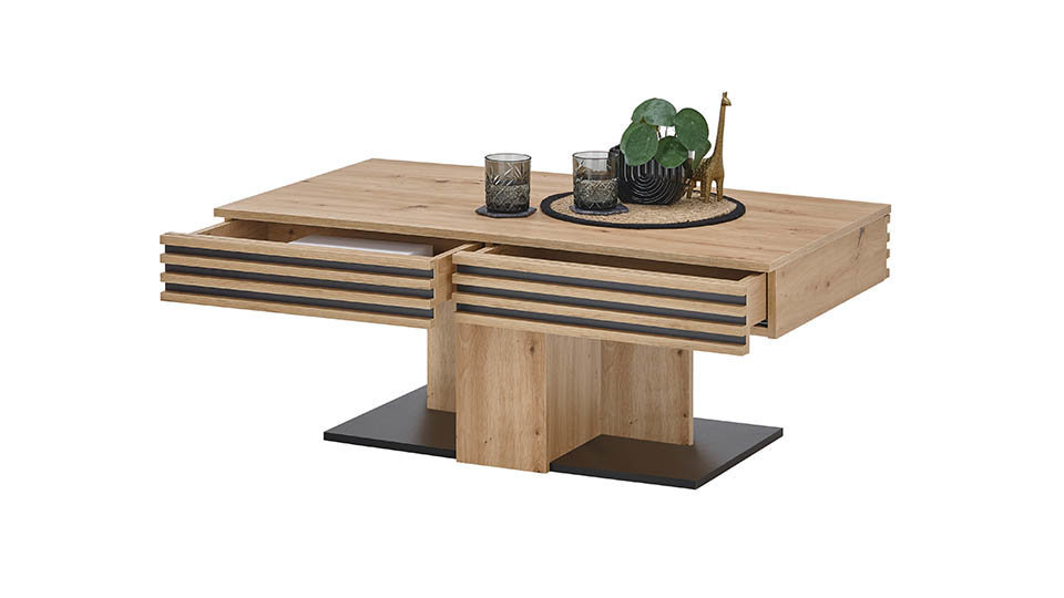 • Masuta de cafea prevazuta cu sertar riflaje din lemn.