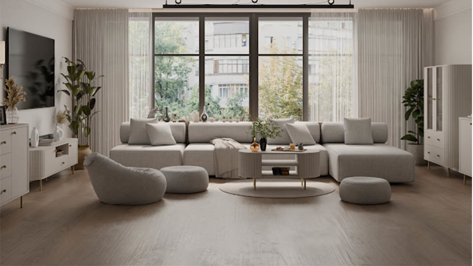 Living configurabil prevazut cu elemente de care ai nevoie si pe care le poti aranja exact asa cum iti doresti, pentru a obtine un mobilier practic, armonios si perfect adaptat locuintei tale.