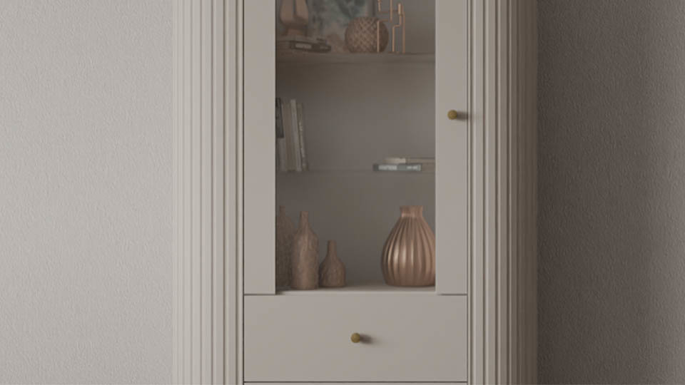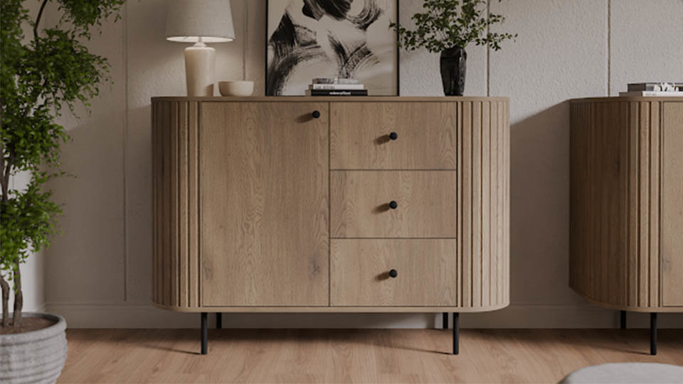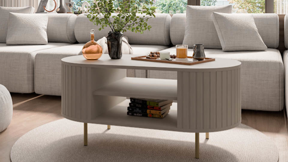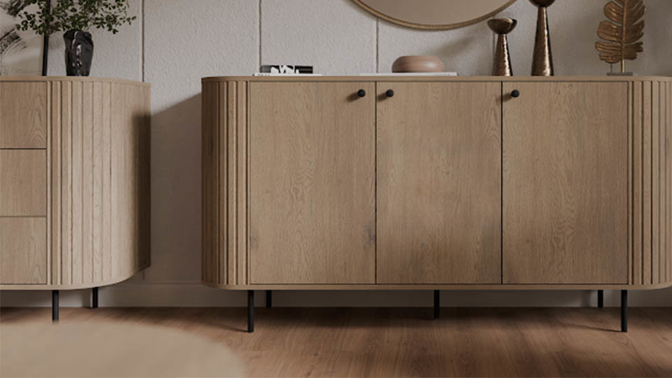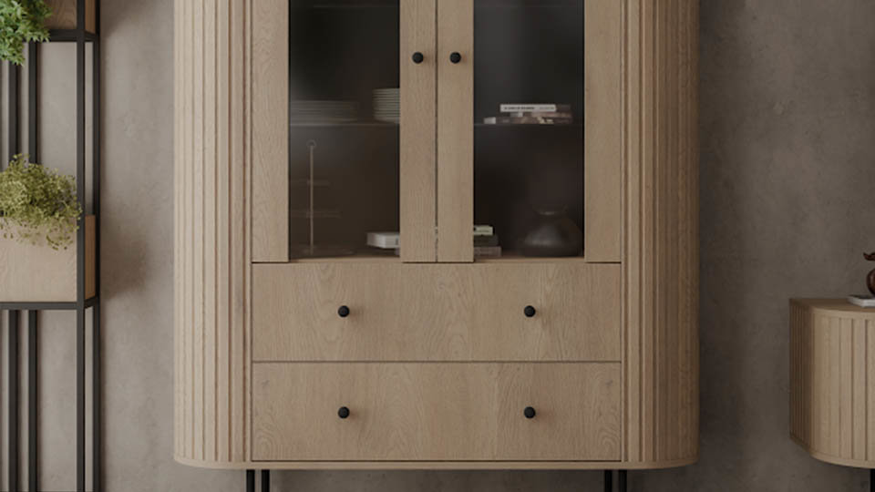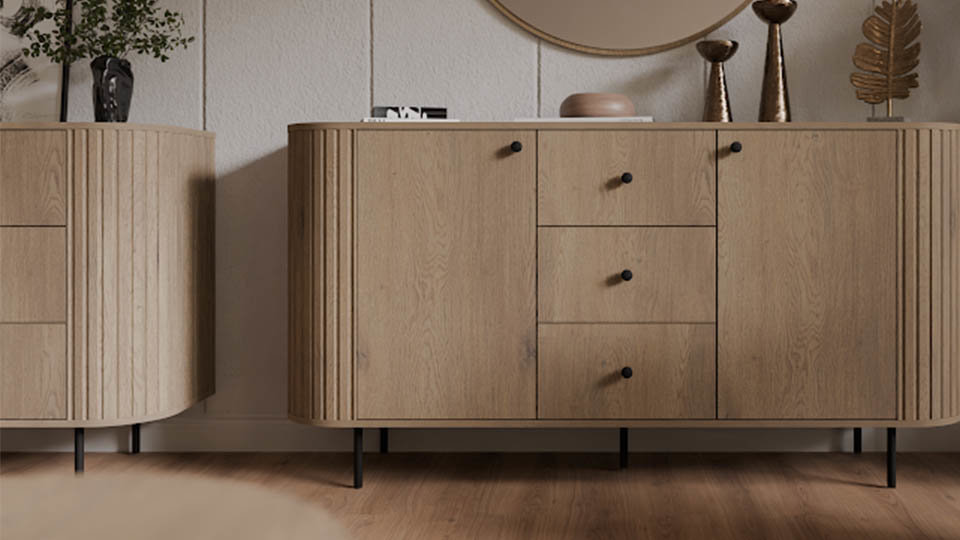 Colectia Ova impresionează prin forma sa armonioasă, combinând un design minimalist cu frezări riflate pe laterale, care adaugă un caracter unic. Datorită finisajului elegant și a amenajării funcționale, mobilierul Ova este perfecta pentru interioare moderne sau clasice, camere de zi, dormitoare și holuri, creând un aspect unitar cu alte piese de mobilier din această colecție.