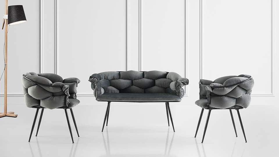 Setul de ceai Balon, format dintr-o canapea si doua fotolii, aduce confort si eleganta in livingul tau, combinând confortul generos cu un design contemporan plin de personalitate.